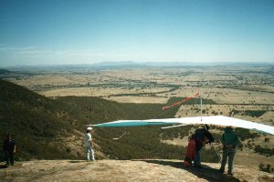 Take off is a large granite outcrop, just below the summit and facing directly west. Although there is a sheer vertical drop of some 500' or more,