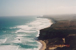 There are no beach landings to the east once past the first bay. Do not fly the sheer cliffs if the wind is light or likely to drop off. When this site is on, there is usually rain associated with the wind direction so beware!