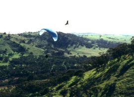This site is quite small, it can very easily become crowded in light conditions. There are numerous dead trees on the face that could catch lines, harness etc. if scratching too close, a power line up the ridge, and the landing here is a serious business due to the powerlines. Expect rough thermic conditions in summer, especially in strong winds due to the hills in front. Aside from that it's quite good fun, with a fantastic view down the Avon Valley to Toodyay.