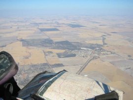 Being 200km inland, the thermals can be stronger and higher than around York. This location was chosen by Western Soarers for its perfect location for cross country hanggliding, and the town facilities. You can fly any direction for a long way without hitting airspace, but you may reach the end of civilisation (roads) if you go more than a couple of hundred kilometres northeast. It's flat open farmland for the most part so landings are easy, and there's a good network of gravel roads, but it would pay to have a retrieve driver, there's not a lot of traffic if you were planning to hitch back.